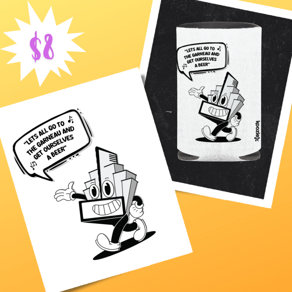 Keep your drinks cool this summer with a Metro Cinema Garneau themed can koozie.